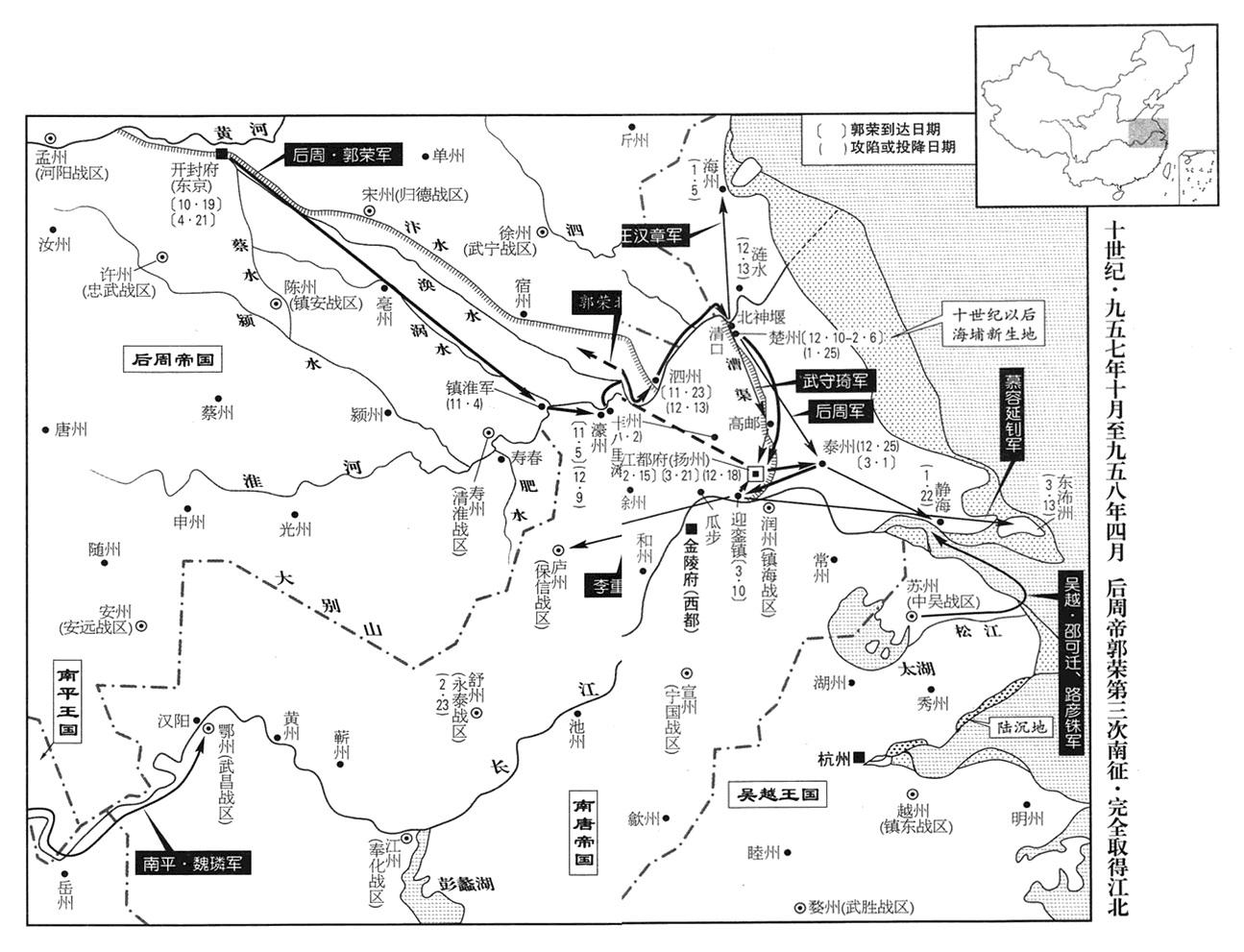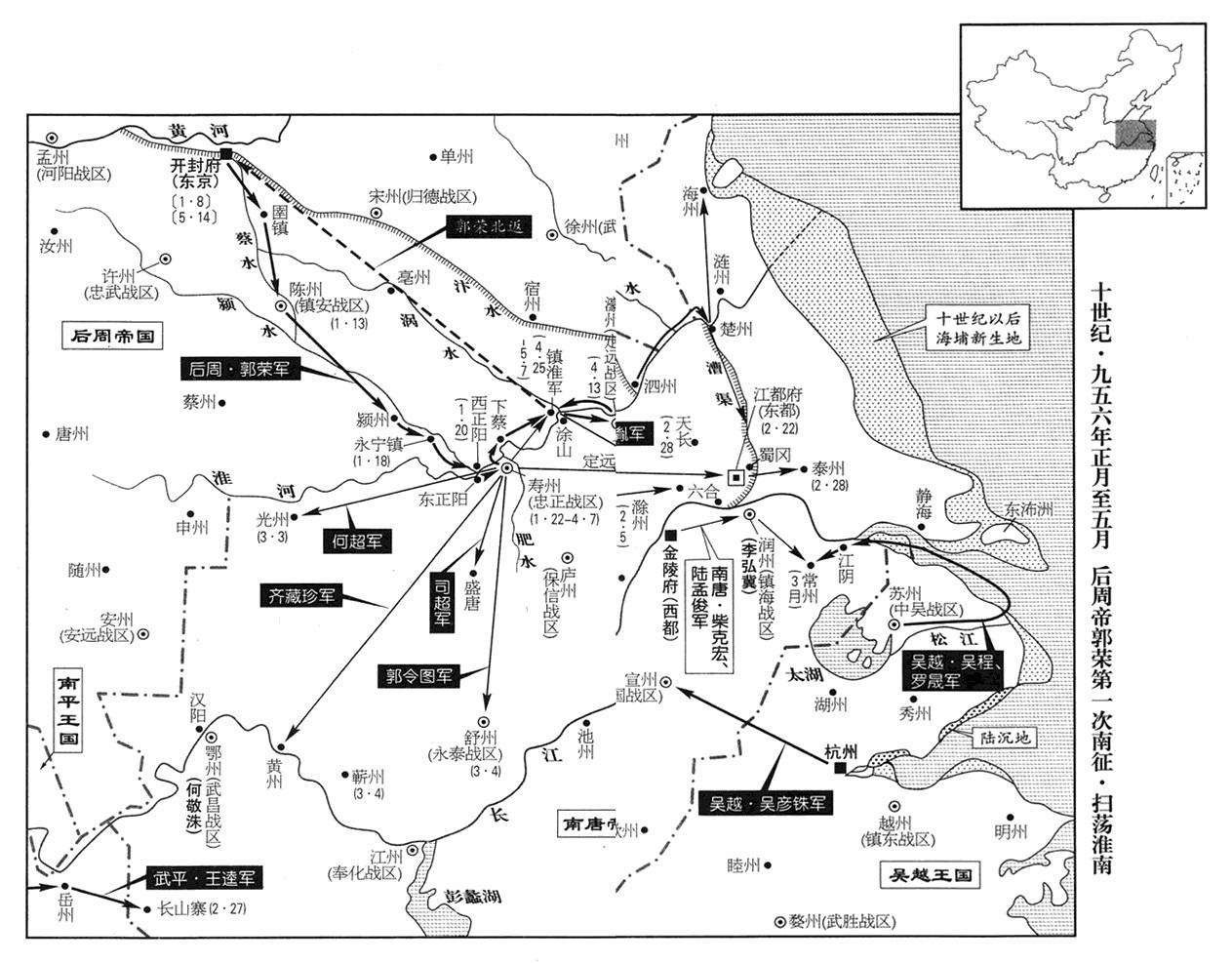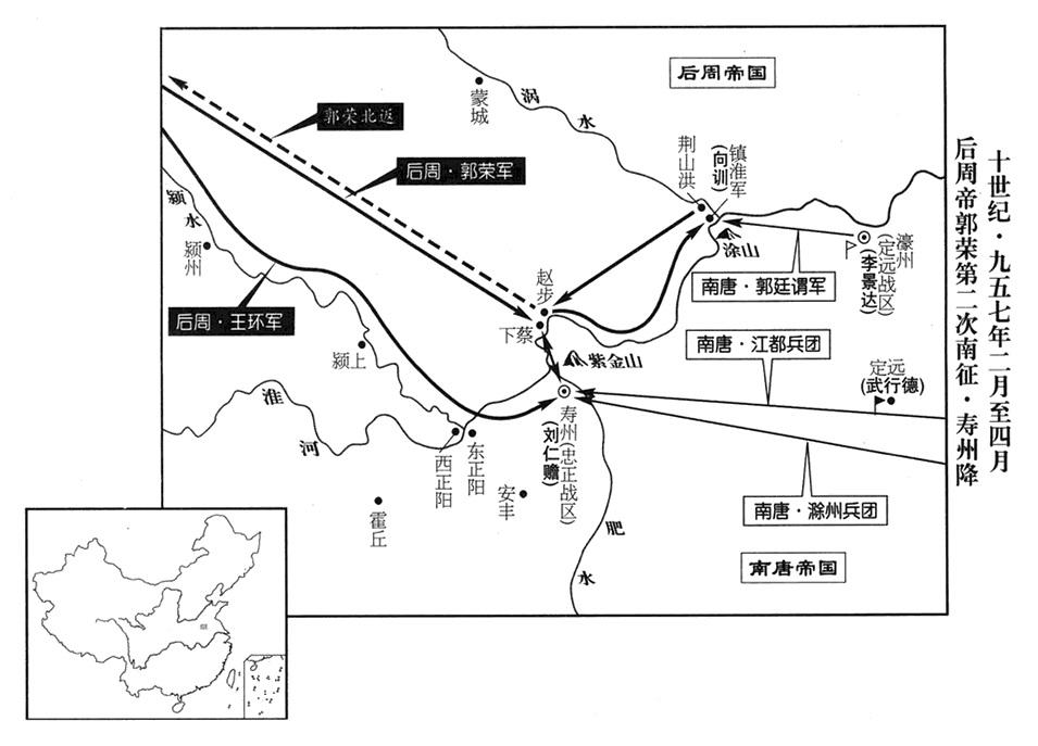 正月十三日,郭荣抵达陈州(河南省淮阳县),立即派李重进率军急行军直向淮河。